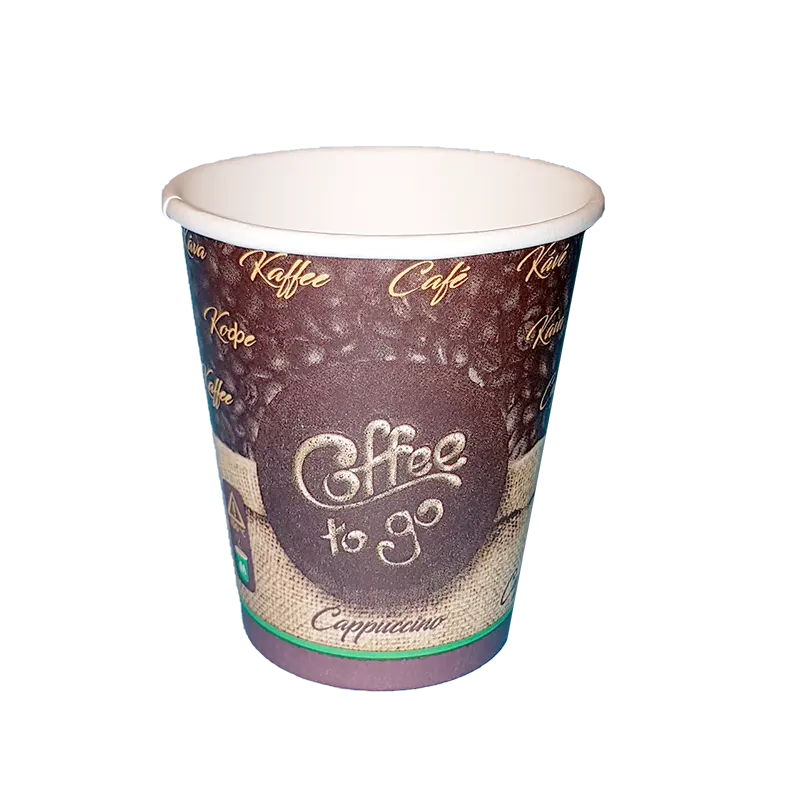 Kvalitní papírový kelímek 0,2 - po okraj 0,28 l s potiskem na horké nápoje (káva, latté apod.). Je možno doplnit víčkem 80 (č. produktu 100975 a 100985 a BIO 101140). V balení je 50 ks.
