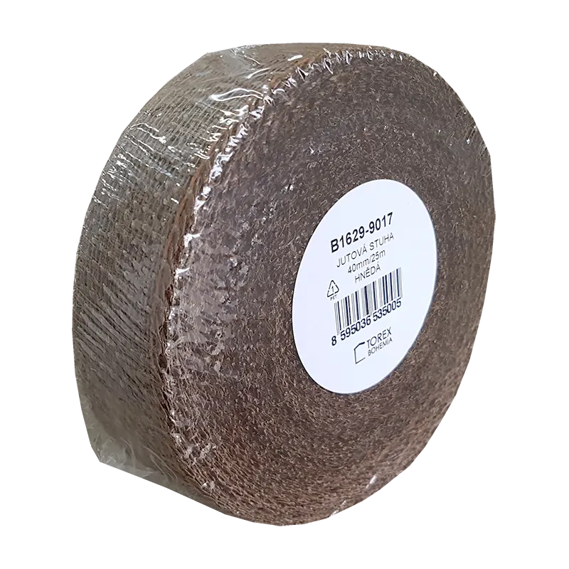 Velká stuha JUTOVÁ pro dekorování balíčků, dárků, v květinářství na vázání květin a jiných předmětů. Šířka stuhy je 40 mm. Přestože je stuha tuhá, je dostatečně tvárná a lze z ní bez problémů vyrábět mašle a dekorace do květin.